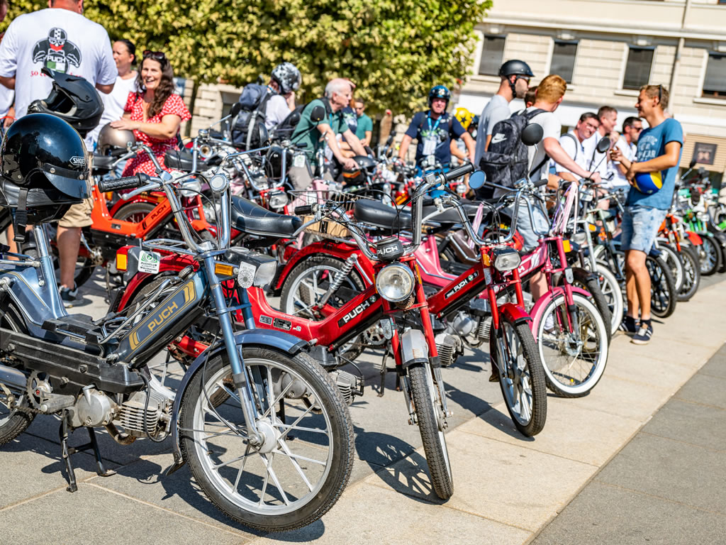 Die klassischen Puch-Mopeds, die gemeinsam den See umrunden, sind ein wahrer Anblick: Ihre eleganten Linien und das charakteristische Rauschen der Zweitaktmotoren erinnern an eine Zeit, in der das Leben langsamer und genussvoller war. Seit drei Jahren ist die Ausfahrt ein fester Bestandteil des Klagenfurter Veranstaltungskalenders. Die Route führt quer durch Klagenfurt und rund um den Wörthersee, vorbei an malerischen Orten mit zahlreichen Stopps für Benzingespräche und Fotos.